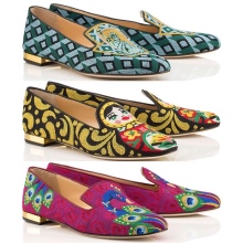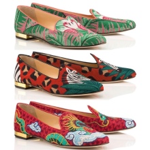 Wish You Were Here line of travel shoes dedicated to designer cities and countries that are iconic for designers. In particular, it contains sleepers with the image of nesting dolls (Russia), rose buds (Great Britain), sakura flowers (Japan). In addition, the collection contains sleepers with dragons reminiscent of Hong Kong, as well as a pair of shoes with the inscription Amour, created after a visit by the designer of Paris.