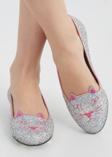 The most creative and vibrant is the collection of shoes and accessories, decorated with the faces of cats. All shoes are made in bright colors - orange, green, blue, yellow, blue. The collection includes slippers, ballet shoes, clutches, bags.