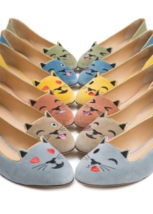 The famous British brand Charlotte Olympia is famous for unusual shoes and accessories for women. The main idea that served to create the products of this brand was the fashion of old Hollywood glamor. The recently released capsule collection has fascinated fashionistas with its design - ballet flats with cat muzzles of emoji, shoes with bright prints, sneakers, sandals and bags for lovers of bold looks.