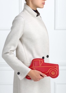 - Creative red clutch in the form of a retro car made of leather.