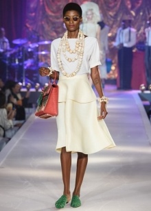 At the spring-summer 2017 fashion show, the Charlotte Olympia brand presented extravagant images that use a huge number of accessories or one very large piece of jewelry. Such images are necessarily complemented by sandals on a high platform and a bulk bag, as this is the main fashion trend today.