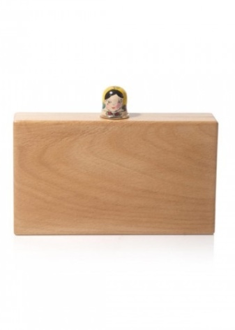 - laconic clutch made of wood and brass with a spider clasp;