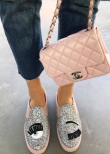 Bold shoes, backpacks and T-shirts from Chiara Ferragni will be the main focus of your image. It is enough to put on a pair of comfortable jeans and complement your look with a stylish leather jacket. Sometimes they have a crazy design, but they create a real extravaganza, invariably causing positive emotions!