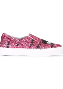 Chiara Ferragni shoes have a spectacular recognizable design. Initially, all models were covered with sparkling glitter and decorated with a pair of eyes, one of which winks around.