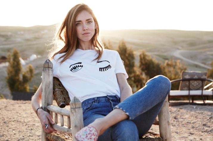 Today in the assortment of Chiara Ferragni you can find a small selection of casual clothes - denim shorts, sweatshirts and t-shirts. Since Chiara is not a brilliant fashion designer, but only a talented blogger, she went the right way - she decided to decorate the basic elements of the wardrobe. T-shirts and sweaters were supplemented with eyes located in the bust area, and on the shorts you can also find floral motifs and a scattering of sparkling stars.