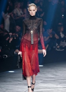 To make the image complete, designers offer to buy interesting scarves and scarves. Such accessories are presented in the brightest shades, as well as decorated with both antique and modern prints. High-quality belts made of embossed leather are available - they can be combined with business and everyday style.One of the novelties is the thinnest crystal strap. You can’t imagine a better work of art!