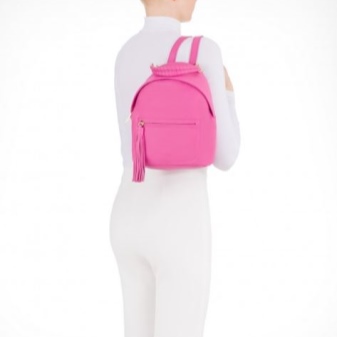 In addition, models of backpacks with a voluminous external pocket have many decorative elements, in the form of leather stripes in the form of women's lips, stars, clouds and funny emoticons.