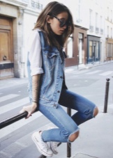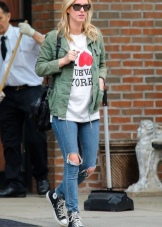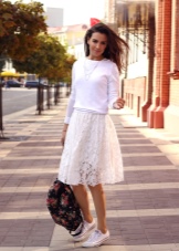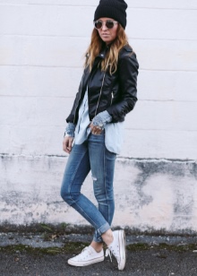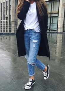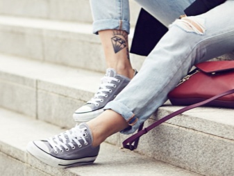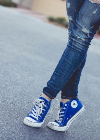 A standard bow is jeans, a t-shirt and gym shoes. In this image, even no accessories are needed. Just a couple of bright conversions are enough. In addition, such shoes can be combined with classic trousers, and even with skirts.