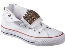At the moment, Converse shoes have a huge assortment, but their first Chuck Taylor All Star model remains the most popular. It is made of durable textile resembling denim. And for the sole, only high-quality vulcanized rubber is used, without a specific pungent odor. These sneakers have already stood the test of time and come in completely different colors and prints: red, white, classic black, speckled, striped, even there are assorted converse studs in the assortment.