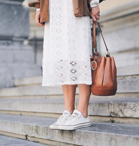 For example, if you are going on a date and want to wear a dress, then sneakers will be a great detail for a gentle romantic look. It will turn out very stylish and youth.