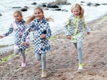 For each season, the company's designers have developed their own type of clothing. Spring-summer models, light and comfortable with cute prints and functional fittings are made of cotton and viscose. For the autumn-winter period, climatic clothing created from membrane fabric has been developed.
