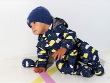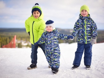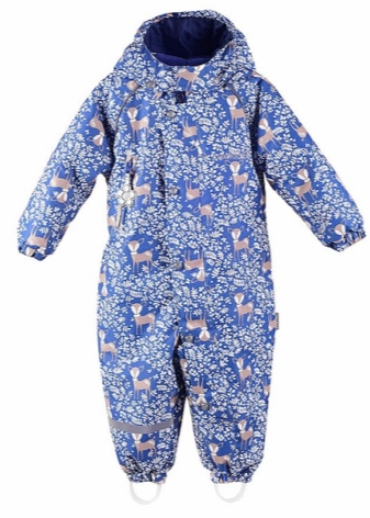For the winter season, overalls with glued seams on goose down are best suited, light, warm and comfortable. A blue jumpsuit with deer or an abstract lime color pattern is a great choice for the little ones. These models are equipped with a collar - a stand, a windproof bar, reflective elements, silicone straps (ribbon-loop) on the shoes.