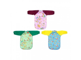 Bib with a ball or as it is also called an apron-bib, a necessary item for babies. The design of this accessory is simple and convenient. The rounded shape, the clasp in the form of a button make it easy to put it on the baby. The apron perfectly protects clothes from stains, thereby saving parents from additional washing.