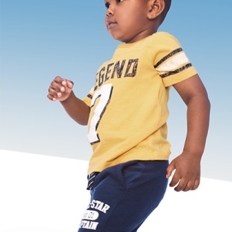 Clothing for boys in this category is usually dark and deep shades: blue, black, gray, brown and burgundy.In addition, you can find bright T-shirts with prints in the form of cars and dinosaurs, sports themes and inscriptions. Even for little mischievous people, you can pick up hoodies and shorts, sweaters and outerwear, pajamas and underwear, as well as bathing clothes and accessories.