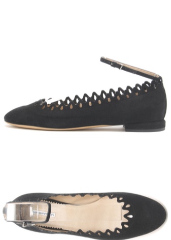Ballet shoes are very popular, they are represented in the brand in various interpretations: without a backdrop, decorated with sequins, varnished, leather, with straps and without them.