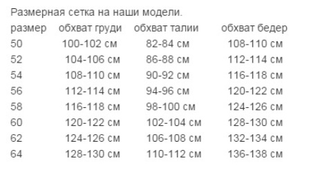 The size range of all models of clothes is from 52 to 64. Designers strive to ensure that all products fit perfectly on lush women and emphasize the figure.