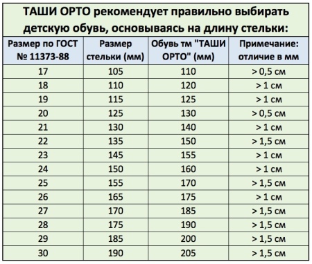 The dimensional grid of Tasha Ortho allows you to choose comfortable shoes for both the smallest and for older children. All sizes correspond to state standard specifications.