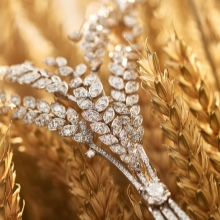 This collection was one of the first to present expensive items made of precious metals and stones. It had stunning brooches in the form of feathers of white gold. They were complemented by shining diamonds.