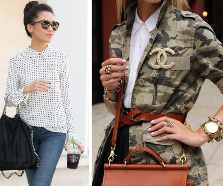 Today, small branded brooches are known all over the world and are very popular. This flirtatious product was very fond of Coco Chanel. Today, the eminent brand highlights special lines for this cute accessory.