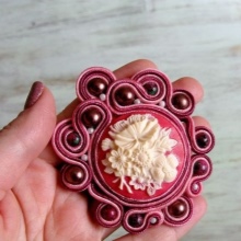 Making a brooch from textile is very simple.. Cut out two thick circles of dense fabric, it is better if they are in contrasting colors. Sew them on top of each other using thread matching. After finishing work, decorate the brooch with beautiful beads, rhinestones, fringe, symbolic figures. A small pin will also need to be sewn on the back, in case you want to make the jewelry removable.