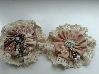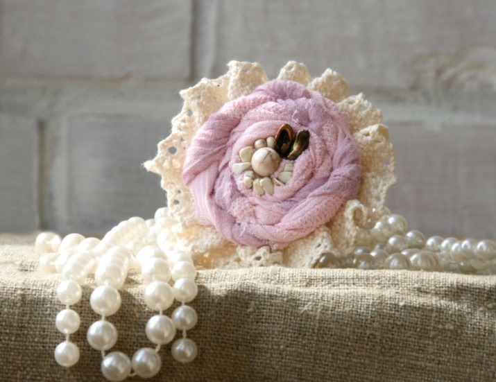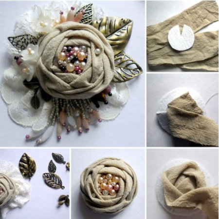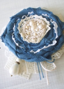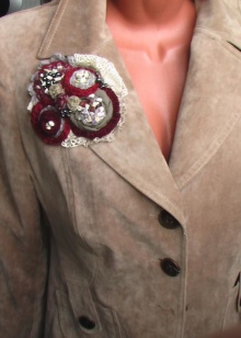 Textile brooches are the simplest in their own production. To do this, use different types of textiles - cotton, burlap, suede, lace, leather.
