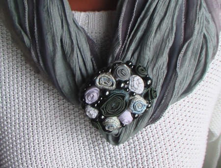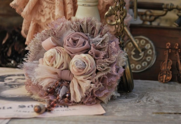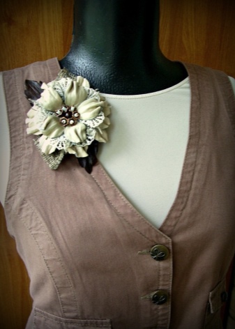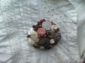 Beautiful brooches made of textiles are in perfect harmony with long skirts on the floor, summer air sundresses, and colorful trousers. If the decoration is a neutral shade, it can be successfully combined with any color in clothes. But when the brooch is bright, select the top in a contrasting shade so that the accessory does not merge with the clothes.