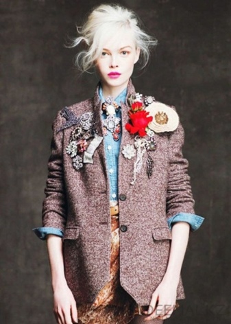 Despite the fact that the Boho direction often deviates from generally accepted norms of taste and style, designers nevertheless recommend observing several rules for wearing brooches. The main thing is not to overload yourself with jewelry. As in the classics, you need to focus on any one product. If this brooch, especially very voluminous, then it will be the highlight that will emphasize your personality.