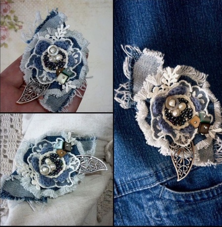 First of all, denim is the prerogative of urban style and street casual. But what about those who like to combine Boho clothing and denim? A good solution is to purchase or make a stunning and voluminous jeans brooch.