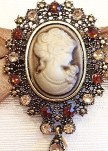 The brooch looks incredibly feminine and romantic - a cameo in an old frame made of gold. The most popular and common are oval shaped jewelry.