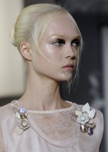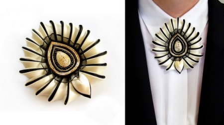 A brooch looks incredibly tender - a pin. It differs in a laconic appearance and convenience. Such options are universal and can be worn for almost any reason.