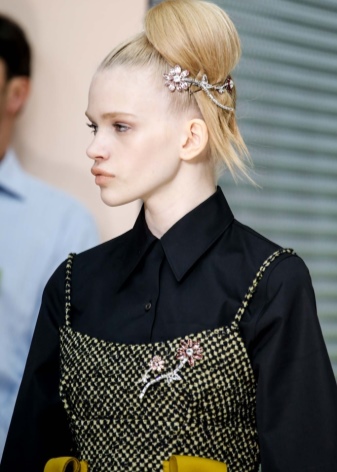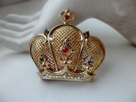 You can create a truly royal image with the help of a golden brooch in the shape of a crown. This season, such products are at the peak of popularity. In such a design today you can find completely different accessories made of precious metals and stones.