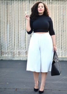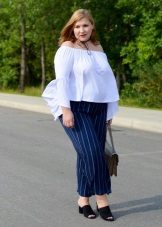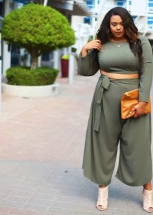 Full ladies should think about combining wide cropped trousers with blouses with a deep neckline, which will certainly divert attention from the full bottom.
