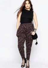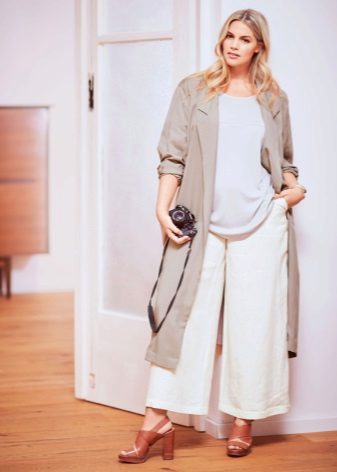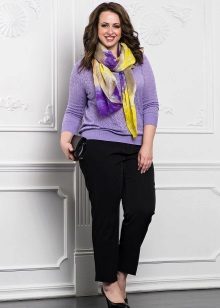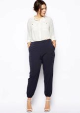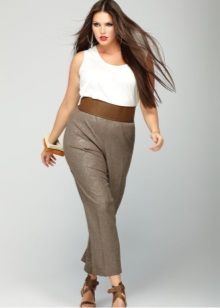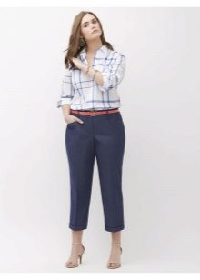 Lush ladies are advised to pay attention to trousers with arrows and avoid too wide trousers, as well as trousers with drapery.