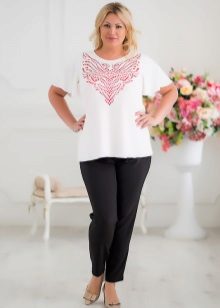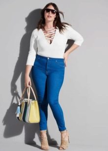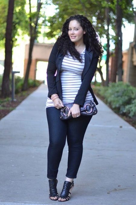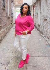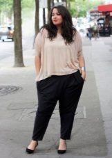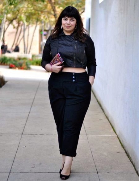 Most overweight ladies are embarrassed to wear tight pants, believing that this will fill them. Fashionable stylists, on the contrary, are sure that overweight is not an obstacle for creating a fashionable look and recommend that women with curvaceous forms should not be afraid to try something new and create their own style with different models and colors.