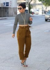 Accessories will always help diversify your look. Big bags of bright colors will suit bright pants, they will make your look truly light and rich. Jewelry is often chosen according to the mood, a good solution would be to use jewelry or jewelry.