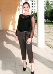 - Trousers 7/8 with high-heeled shoes will allow you to increase height and make your figure slimmer, and an unusual blouse will perfectly complement the image.