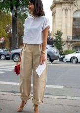 In addition to simple T-shirts, tops and T-shirts that are ideal for wide trousers, afghani can be combined with a huge number of things from everyday wardrobe: cropped blouses and sleeveless shirts, fitted jackets and jeans.