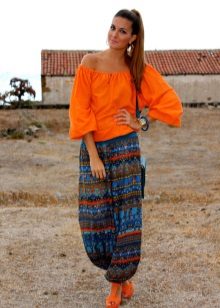 The following selection of stylish bows with afghan trousers is a good example of how effectively this garment can combine with things in different styles.