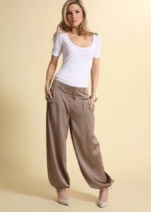 One of the first Europeans to wear trousers that looked like harem pants was the famous Mata Hari, a dancer, and also a spy. In this outfit, she performed seductive oriental dances. Then trousers with a lowered line of seating seemed too frank to society, so this style for several decades did not enjoy a special location among European fashionistas.