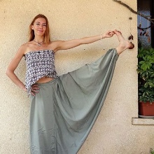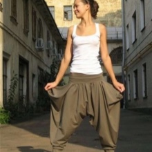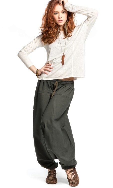 Another model is cropped alladin pants, usually to the knees. Often made from knitwear. Ideal for sports.