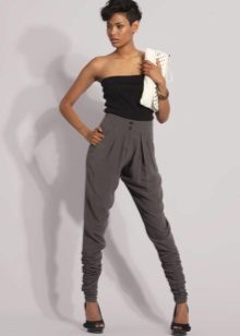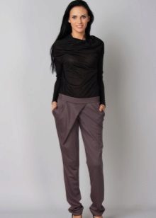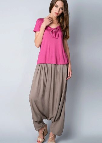 In the set for trousers-aladdins, you should choose a simple unobtrusive top. These pants - in themselves, are a bright accent in the image, otherwise you risk overdoing it.