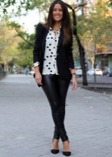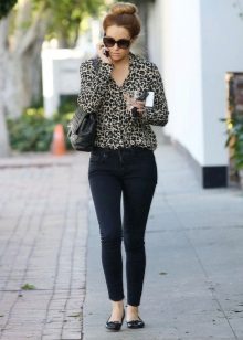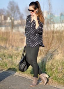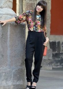 Skinny black pants are preferred by many fashionistas. They can be safely combined with different tops. Blouses and checkered or striped shirts with floral prints are in demand.
