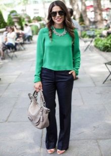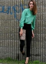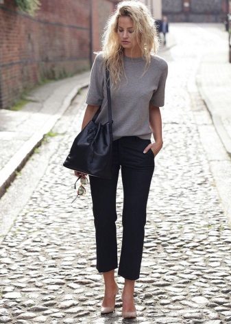 Black cropped trousers can be combined with a variety of chiffon shirts or blouses. A bright jumper will become a beautiful decoration of the image in cold winter. Pump shoes, a bright handbag and a strap will help to complement a stylish bow.