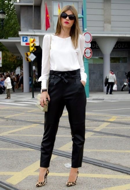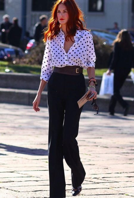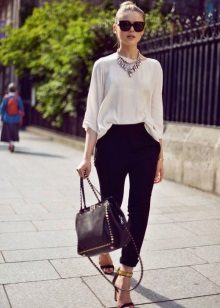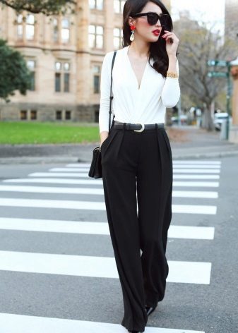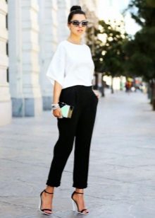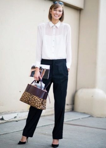 Black trousers, especially of a classic cut, are often combined with a white top, for example, with a blouse or shirt.