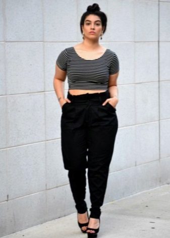 Owners of a pear-shaped figure prefer shortened models of black trousers. It is this style that allows you to hide the wide hips that stand out compared to the narrow shoulders, create harmony between the disproportionate parts of the body.