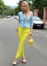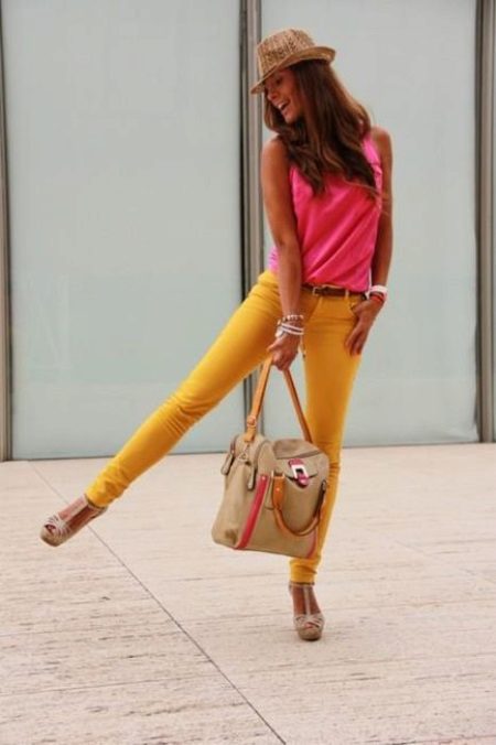 Today, colored trousers are in trend. They will appeal to girls who have a lot of blouses and t-shirts, because the variety of colors of the pants allows you to pick the top in different colors.