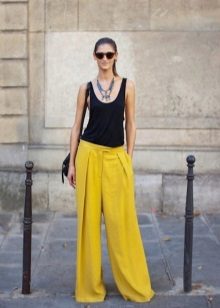 Wide trousers should be combined with tight-fitting T-shirts or T-shirts, and models of tight-fitting cut require loose tunics or flying tops.