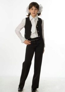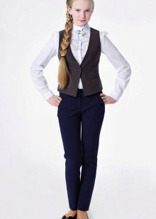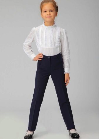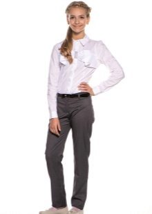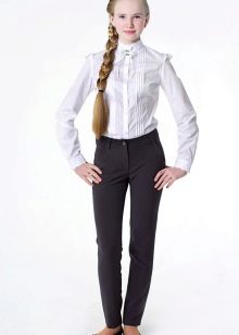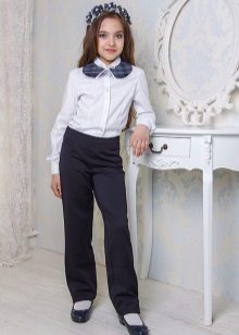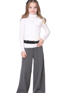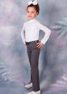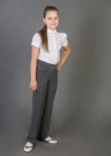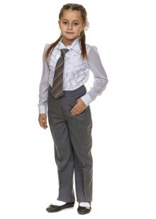 Gray trousers are another business model. They are perfect for school, as they go well with various elements of a school uniform - shirts, strict turtlenecks, vests and cardigans.