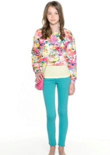 Turquoise trousers are also very popular among little princesses. In addition, this beautiful, saturated color is also one of the most fashionable in the past few seasons.