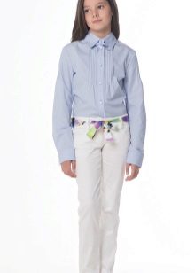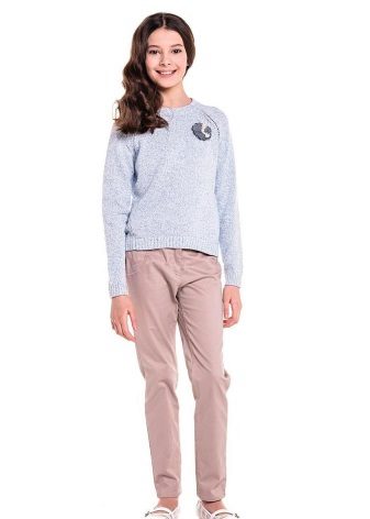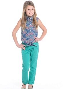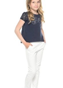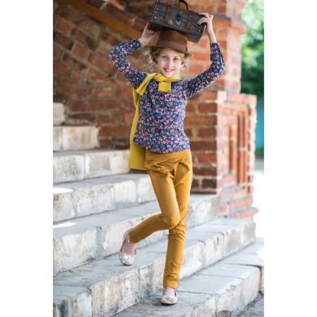 Outside of school, girls wear trousers with any casual wear. First of all, it is a variety of T-shirts and shirts, as well as any styles of sweaters. Bright casual tops, denim and plaid shirts, tunics and sweatshirts will suit casual pants.